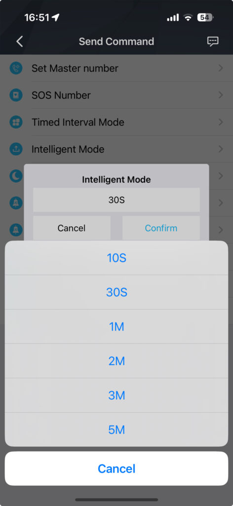 ※注意※Battery saving mode、Timed Interval Modeは絶対に触らないようにして下さい。この発信機は基本的にInteligent Mode以外は使用しません。