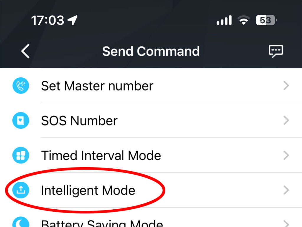 設定は発信機がオンラインの間にだけできます。見分け方はGPSアイコンが青もしくは緑の時です。